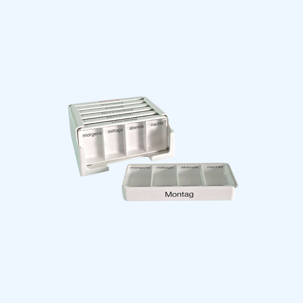 Der Medikamentendosierer bietet eine praktische und zuverlässige Lösung zur täglichen Organisation und Dosierung Ihrer Medikamente. Mit mehreren separaten Fächern können Sie Ihre Tabletten übersichtlich und griffbereit aufbewahren, um sicherzustellen, dass Sie Ihre Medikamente zur richtigen Zeit einnehmen. Der Dosierer ist kompakt, leicht zu reinigen und ideal für den täglichen Gebrauch, sowohl zu Hause als auch unterwegs.